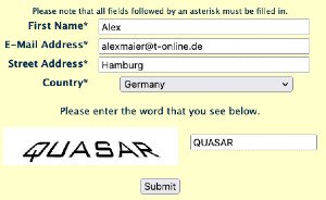 Bevor Sie das Formular absenden ("submit") wird die Eingabe des angezeigten Wortes verlangt.