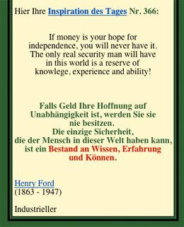 Sie zahlen niemals den Materialwert, sondern den Nutzwert. Eine einzige Aussage kann Ihnen ein Tausendfaches des Bezugspreises einbringen. Darüber hinaus erhalten Sie hunderte von Gratisartikeln; allein für die Programmierung und für Übersetzungskosten haben wir in zwei Jahren etwa 50.000 Euro investiert. Wenn Sie das gebündelte Wissen aus I-Bux.Com mit den Preisen für Seminare oder Teleseminare vergleichen, sind unsere Preise geradezu lachhaft niedrig. Wer für Wissen kein Geld ausgeben will, um in sich selbst zu investieren, ist vermutlich bei I-Bux.Com an der verkehrten Stelle. Dieser Mensch wird dann den Preis für sein Nichtwissen zahlen müssen. Bedenken Sie auch, dass Sie in vielen Fällen ein komplettes zweites E-Book als Bonus erhalten, zum Beispiel: