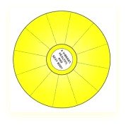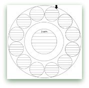 Bei diesem Hilfsmittel handelt es sich im Grunde nur um zwei Kreise, welche Sie auch von Hand zeichnen können. Dann ordnen Sie üblicherweise 12 kleinere Kreise außen herum so an, dass Ihr Wunschrad einer Uhr gleicht (es könnten aber auch nur 8 oder 10 Außenkreise sein; das hängt auch ein bisschen von Ihrem Thema ab).