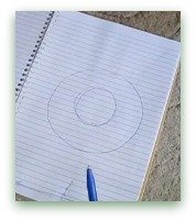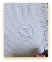 Sie nimmt sich ein Blatt Papier, zeichnet einen kleineren Kreis in die Mitte und schreibt hinein: