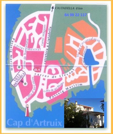 Mi casa se llama "Villa Bennorca". Se halla en la C/ Tramontana 15 en Cap d'Artrutx. Es una calle sin salida (cul de sac), y la casa se encuentra justo en frente del complejo turístico Cel Blau Es el único duplex en la rotonda. Lanzadera / Shuttle BusHay dos empresas que ofrecen un traslado directo desde el aeropuerto a Cap d'Artrutx: Las tarifas son más o menos iguales.